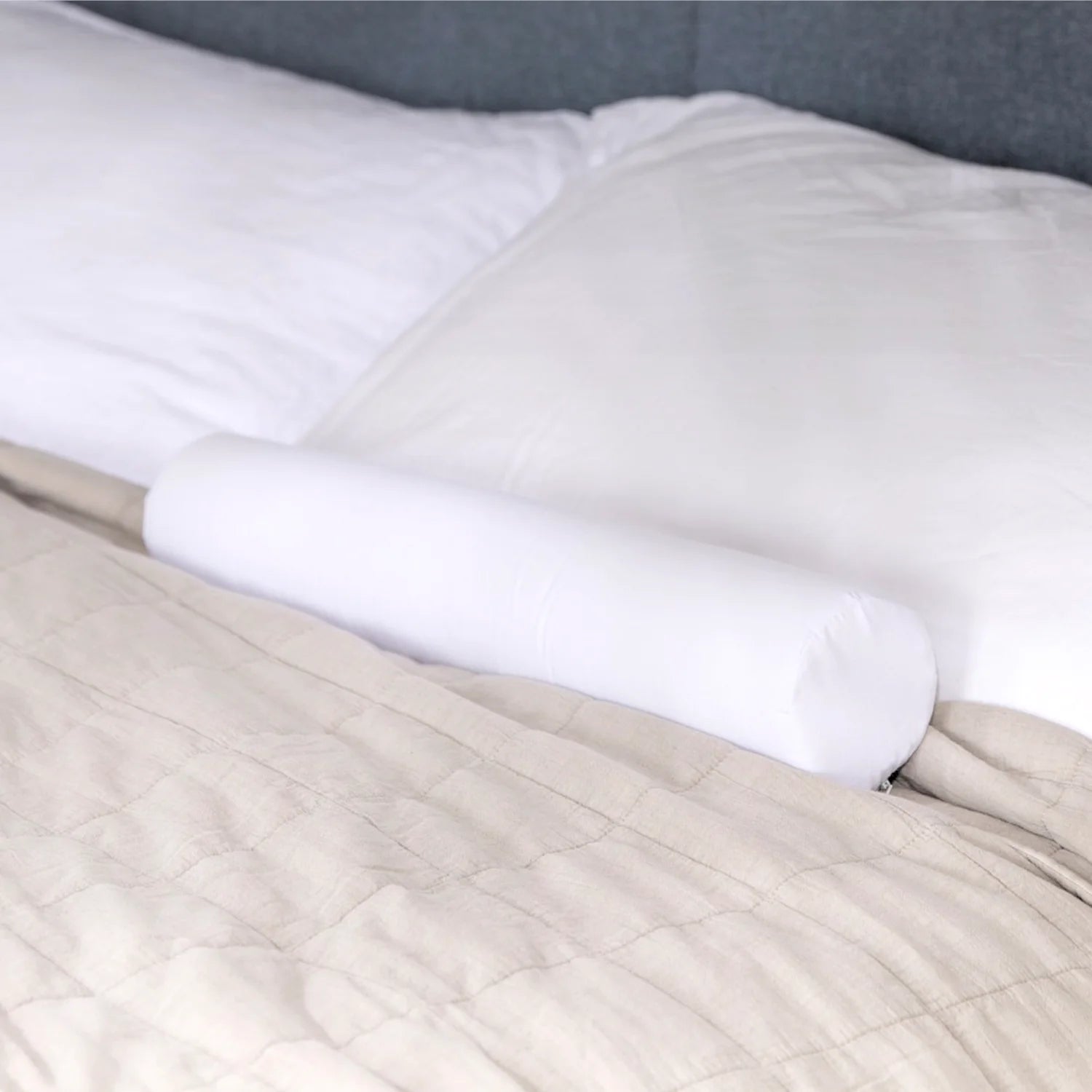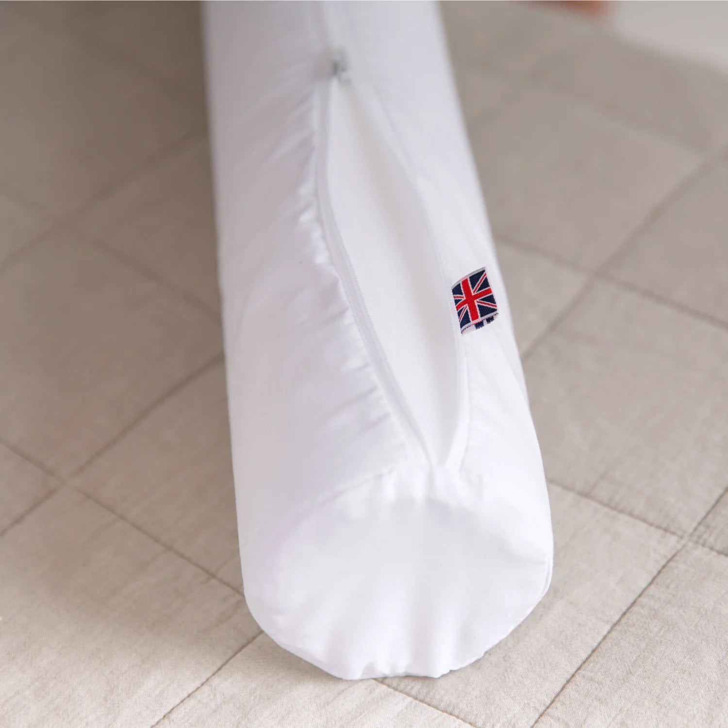 Weißer Bezug aus Baumwollmischgewebe, mit Reißverschluss, abnehmbar - 50 % Baumwolle und 50 % Polyester.