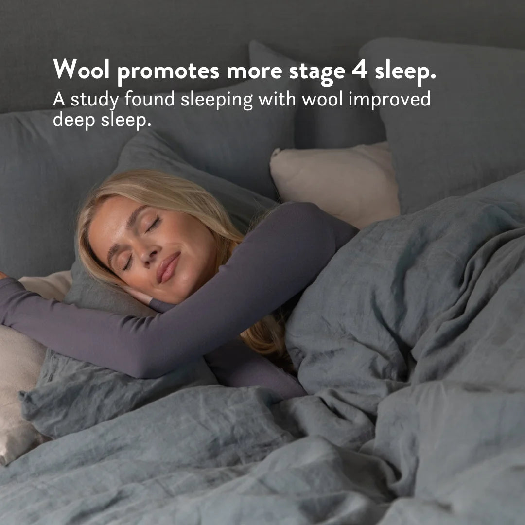 Eine Studie hat außerdem ergeben, dass das Schlafen mit Wollprodukten zu bis zu 25 % mehr regenerativem Schlaf der vierten Schlafphase führt. Das bedeutet, dass Sie erholter aufwachen und mehr Energie für den Tag haben.