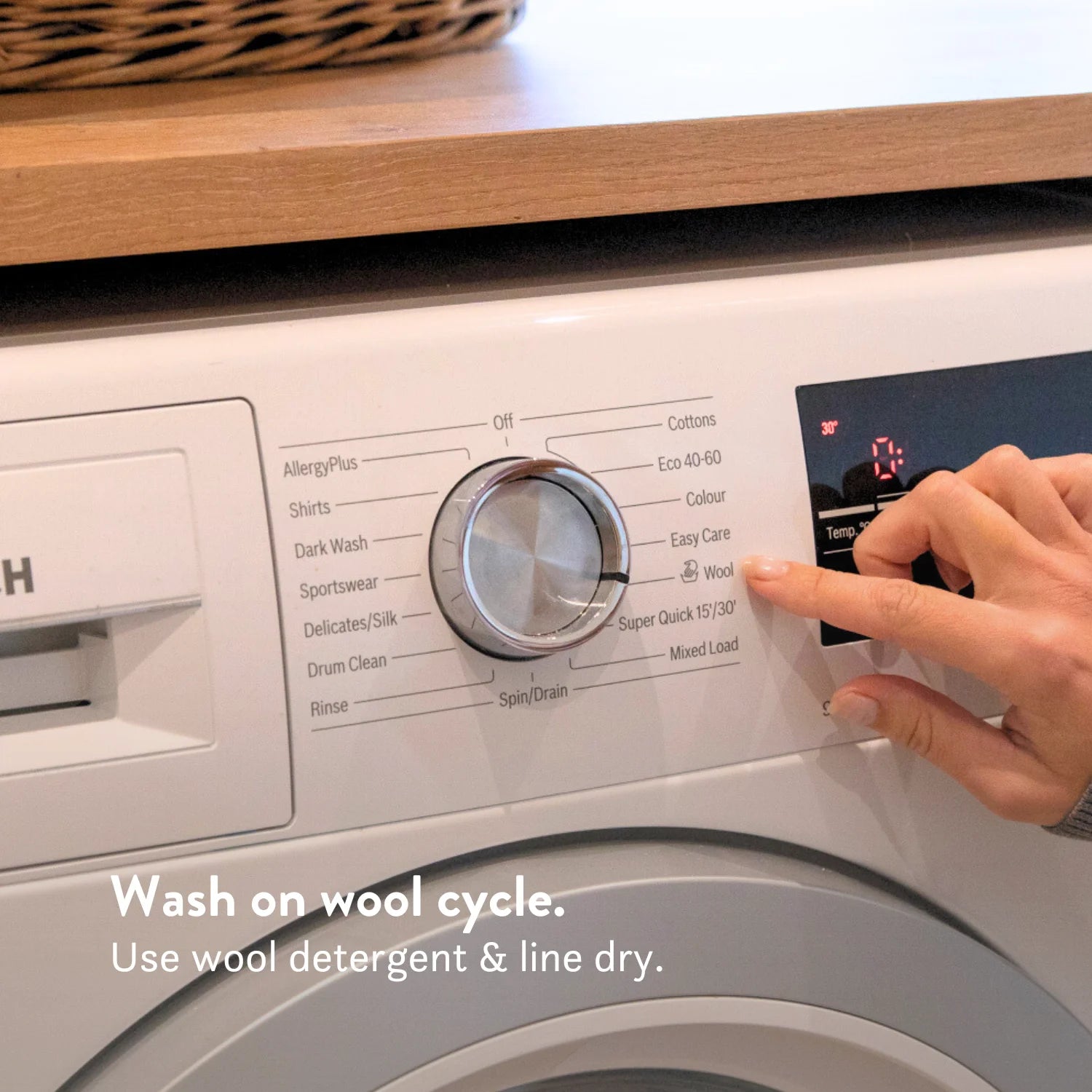 - Wash on wool setting with wool detergent & line dry